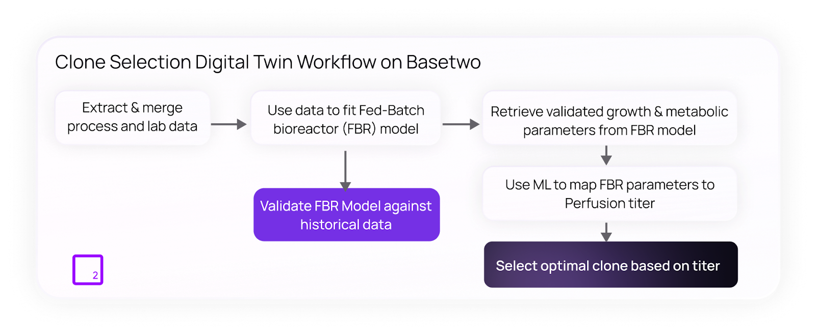 By virtually predicting cell growth, metabolite trends, and titer outcomes, Basetwo’s platform enabled the client to rank clones for perfusion suitability before running experiments.
